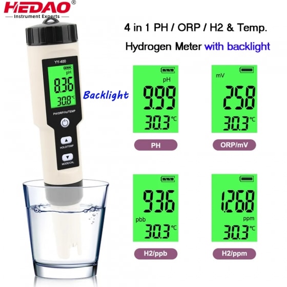 4 in 1 PH / ORP / H2 & Temp. Hydrogen Water Quality Tester with backlight
