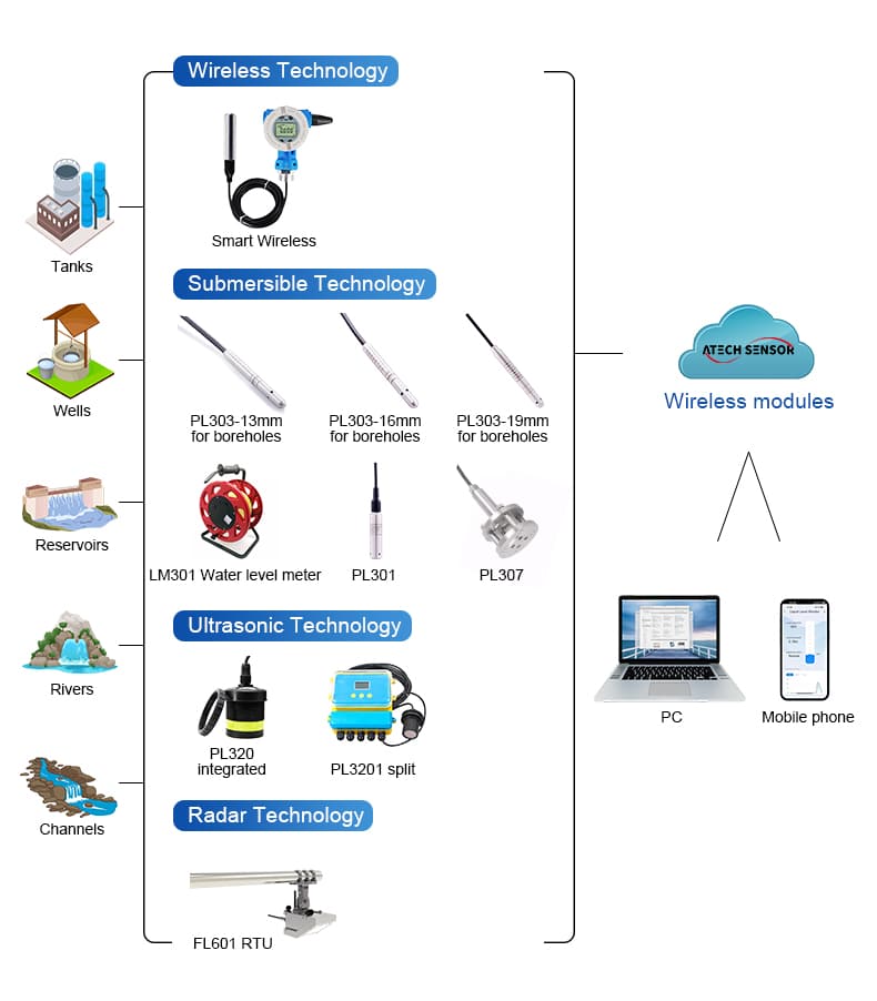 Atech level sensors offer a comprehensive solution for monitoring and managing liquid levels in industrial tanks, reservoirs, wells, and other containment systems. These sensors are engineered to provide accurate measurements, easy integration, and robust performance in challenging conditions.
