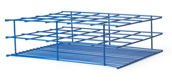 Made in the U.S.A. of 10 and 12-gauge steel fused together to create strong joints and straight lines. Rack is finished with an electrostatically applied powder coating. The result is a strong, durable finish which will stand up to many laboratory materials and the rack can be autoclaved. Max dry temperature is 300°F (148°C) and wet temperature is 500°F (260°C). Dimensions listed above are approximate. Compartments fit most bottles associated with standard drinking water sampling.