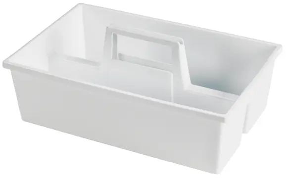 eam autoclavable, polypropylene molded tray has built-in handle for easy carrying of reagents or laboratory ware using one hand. Product dimenstions are 14.9 x 9.4 x 4.5″ (L x W x H). Each pocket is approximately 4 inches wide.