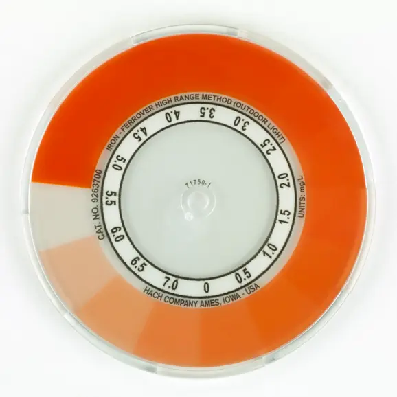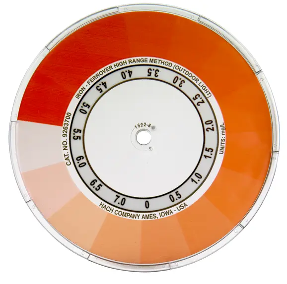Uses color disc and drop count titration methods