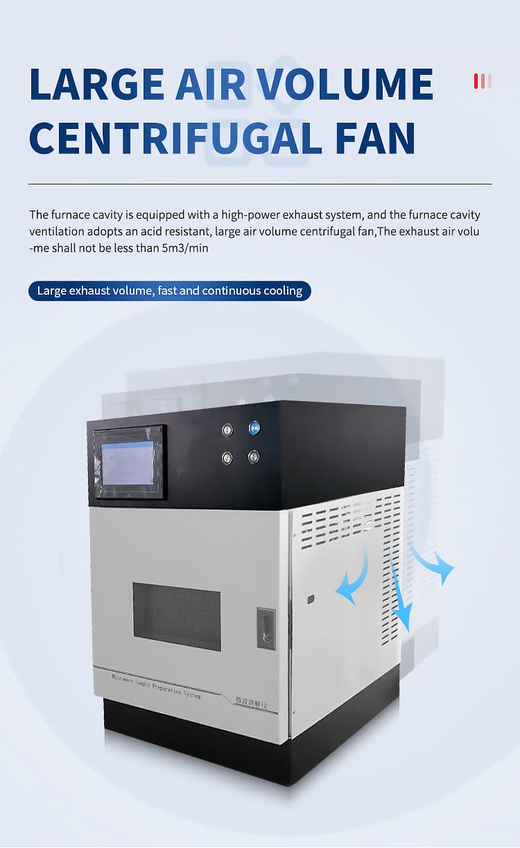 (6) Microwave chamber: 52L, 316 grade all stainless steel chamber, 6 layers of anti-corrosion and high-temperature resistant Teflon coating;