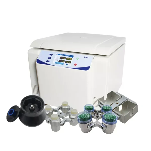 Tabletop low speed centrifuge has a large capacity. It is widely used in the field of clinical medicine, biochemistry, genetic engineering and immunology etc. It is the essential equipment used by hospitals, scientific research units and institutions of higher learning