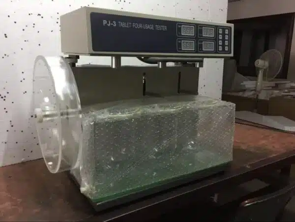 It has four functions: detecting pharmic dissolution, disintegration, friability/abrasion and hardness of tablet.
