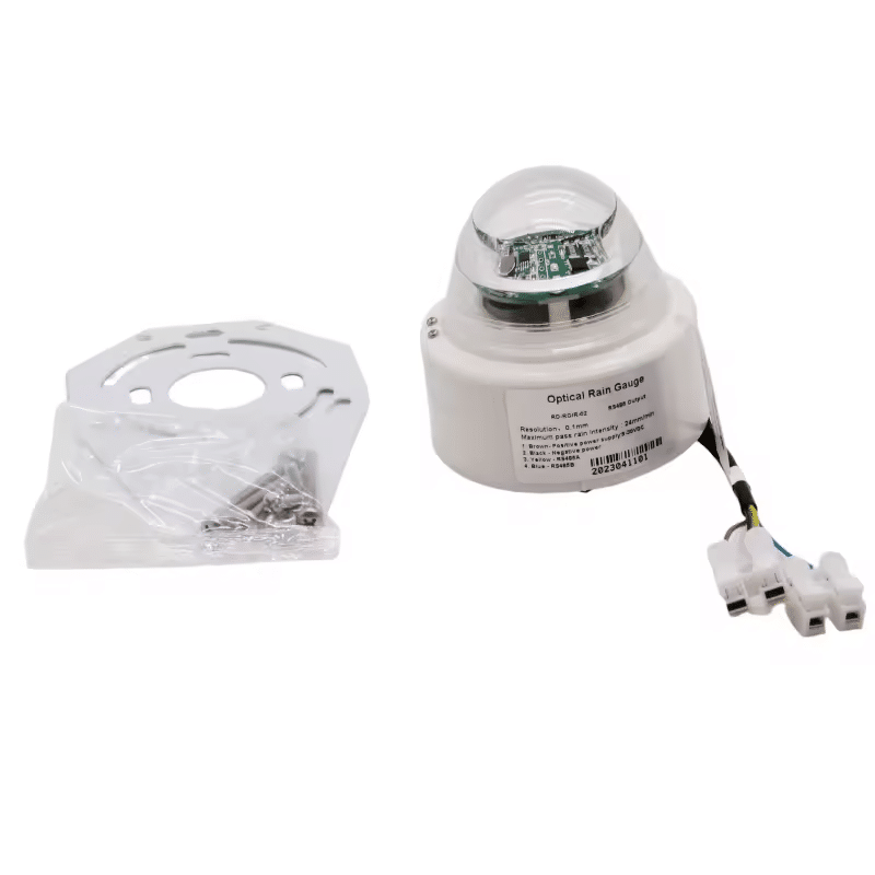 Compared with the tipping bucket rain gauge: the optical rain gauge is small in size, simple to install, and easy to maintain. The optical rain gauge uses electronic optics and a series of microelectronic filtering, amplification, and detection technologies. This principle has the advantage of sensitivity. During installation, because the optical rain gauge is non-mechanical and non-contact measurement, there is no horizontal installation requirement, so the installation is simple and the subsequent maintenance is also convenient. The shell has smooth lines and an easy-to-maintain design, which is not easily blocked by fallen leaves.