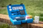 Colorimetric tests include free chlorine, total chlorine, fluoride, high range manganese, zinc, copper, nitrite, dissolved iron, high and low range alkalinity, high and low range orthophosphate, high and low range hardness, peracetic acid, and more.