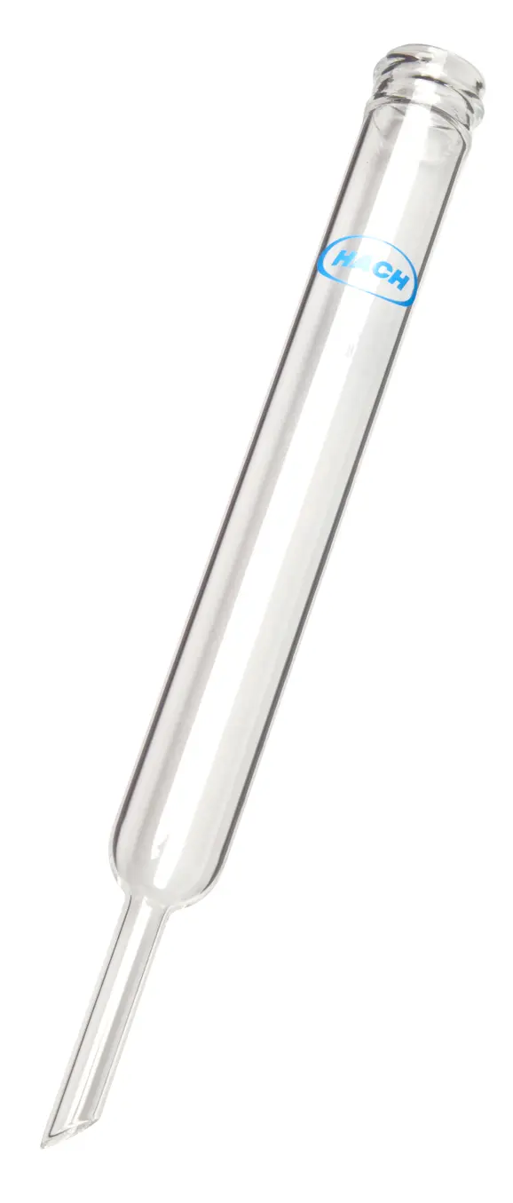 Borosilicate glass drip tube with 7 mm outside diameter, 45° bevel tip. Body is 17 mm outside diameter and 145 mm in length with a 20 to 400 screw-thread finish. Use on Hach Distillation Apparatus.